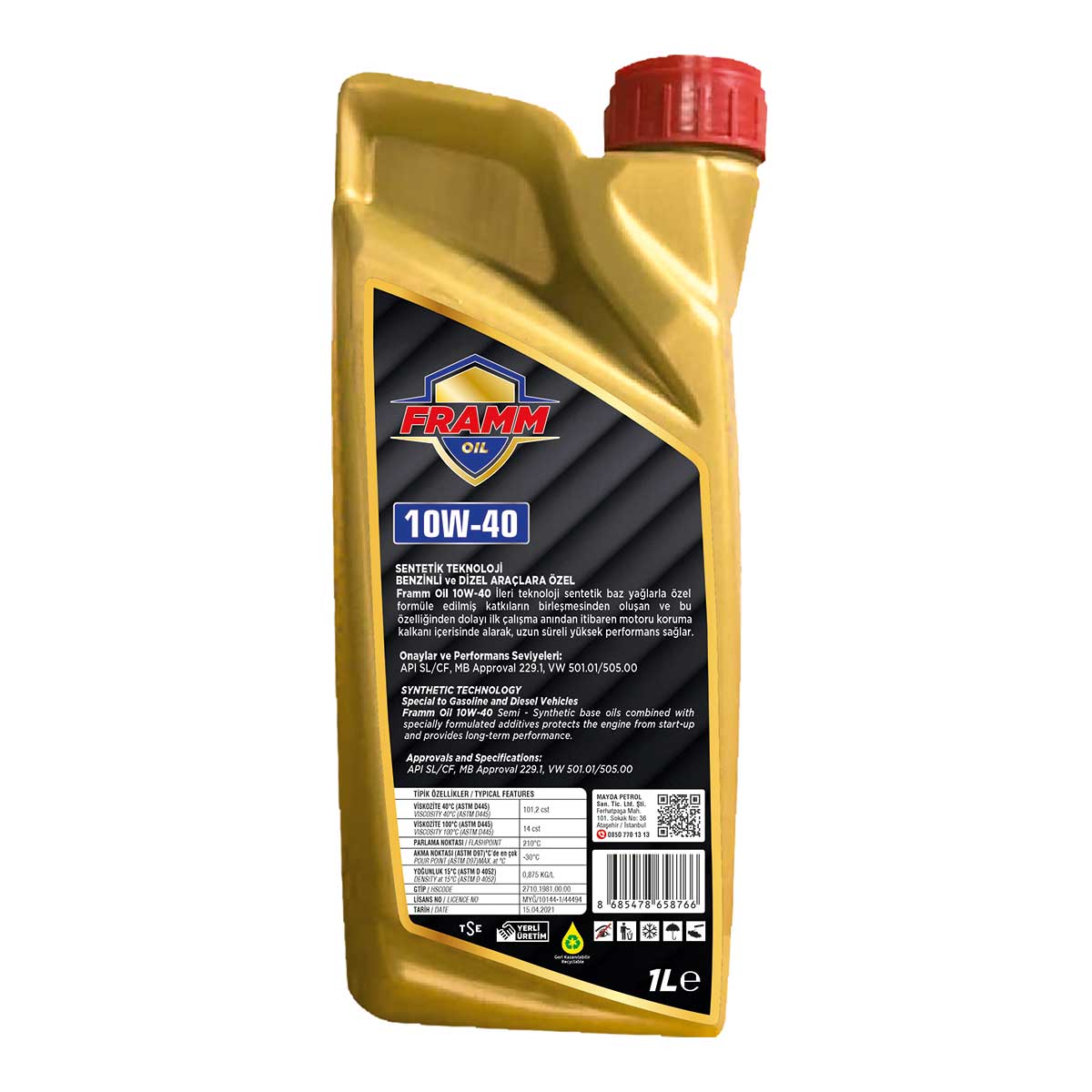 Framm Oil 10W-40 Ileri teknoloji sentetik baz yağlarla özel formüle edilmiş